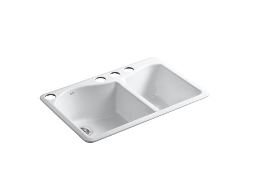 KOHLER K-5841-4U-0 Lawnfield Undercounter Offset Double Basin Sink with Four-Hole Faucet Drilling, White Reviews (Features and spesification)